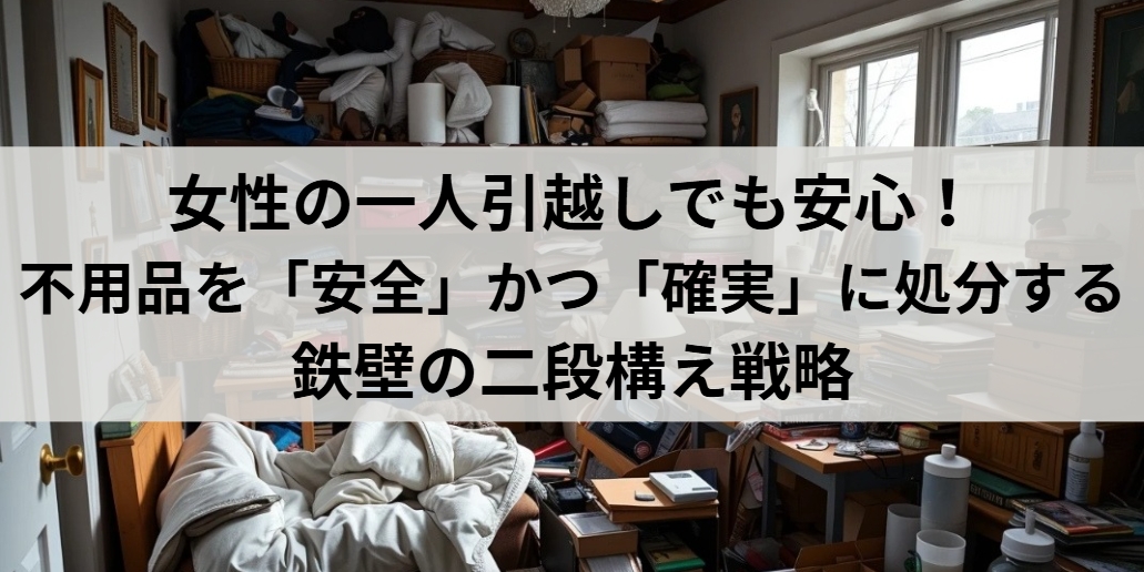 この記事では、過去に悪質な業者で怖い思いをした経験を持つ私が、「女性限定プランのある買取業者」を味方につけ、万が一の「買取不可」にも動じない、引越し難民回避のための「鉄壁の二段構え」処分戦略を伝授します。この方法なら、トラブルゼロで、スッキリと新しい生活を迎えられますよ。